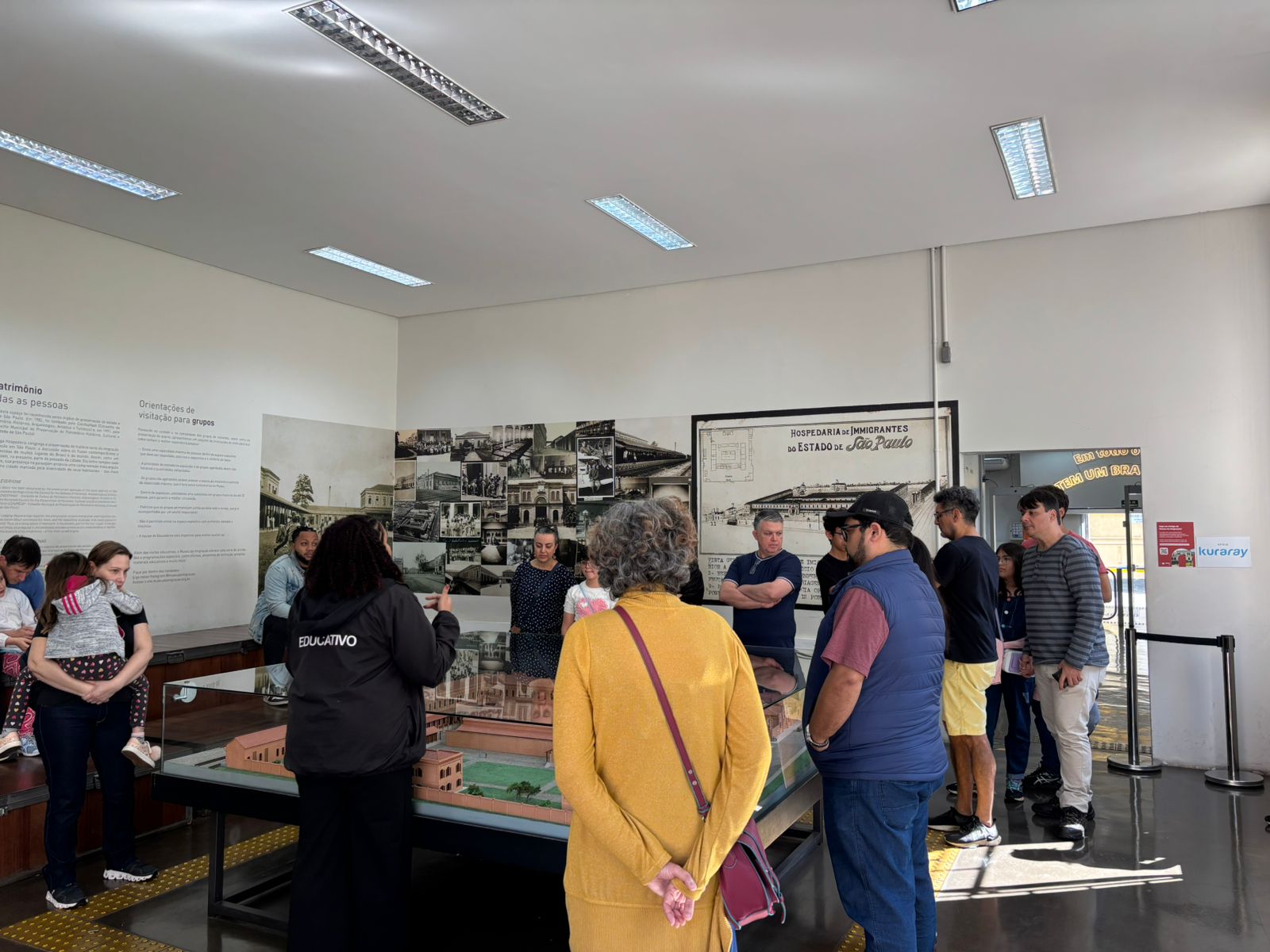 Em 2024, antes mesmo do fechamento para a grande reforma, e ao longo de todo o ano de 2025, algumas dúvidas se fizeram presentes no cotidiano do Núcleo Educativo, tais como: “O que de fato constitui um museu?” Seria o prédio tombado, o acervo, as exposições? Obviamente, todos esses elementos se unem para constituir um museu, mas seria possível conceber um museu sem esses elementos? Ou, ainda, como funcionaria um museu histórico e tradicional sem sua exposição de longa duração? A exposição anterior apresentava o acervo com objetos que estavam muito cristalizados no imaginário das pessoas, como as réplicas das beliches, a parede de sobrenomes, os livros de registro, entre tantos outros elementos que compunham as salas expositivas e estão sempre presentes em qualquer busca rápida sobre o Museu da Imigração. No caso dos museus históricos, é muito comum que estes se insiram no papel de "museu ilustrativo", pois se tornam, nesse sentido, um espaço de ilustração do que foi aprendido em sala de aula, visto em uma novela ou no relato de uma história familiar. Nesses casos, a visita se torna parte do processo avaliativo do tema e, em muitos casos, não se possibilita fazer reflexões maiores do que o esperado.